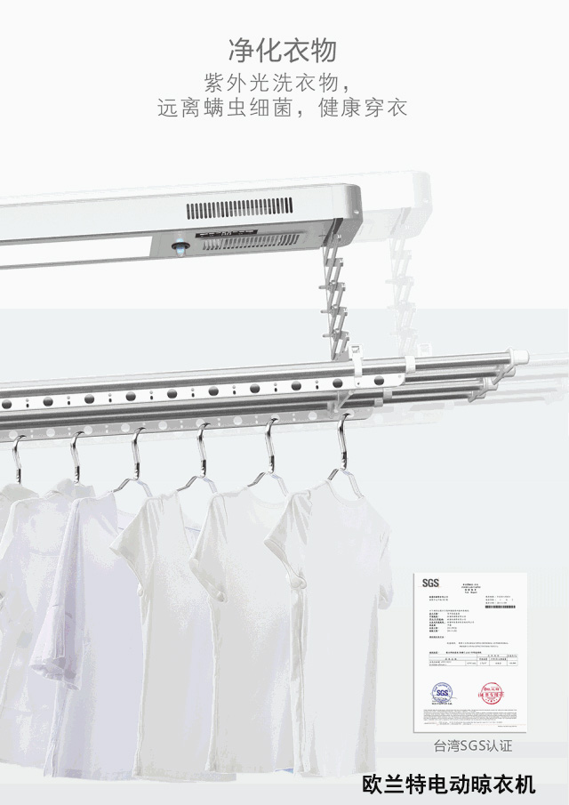 开启欧兰特电动晾衣机的消毒功能,消毒20分钟。